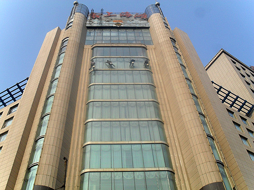 3.铝塑板外墙清洗:采用中性全能清洁剂,按照1:50比例稀释。在建筑物外墙面选择一处典型的污垢表面,进行小样清洗,确定清洗剂的稀释比例。将抹水器或清洗滚筒浸入水桶内的清洁溶液浸泡,用浸泡有清洁剂溶液的抹水器或者清洗滚筒在铝合金装饰表面抹擦,使污垢润湿、脱离。用刮水器将铝合金装饰材料表面的污水刮掉,刮水器每刮一刀,应用抹布将刮水器刮擦平面的污水擦拭干净,在刮下一刀。特殊污垢可使用抹布直接擦拭后再用刮水器刮擦。高层楼宇均设有百叶窗避难层和设备层,对铝合金百叶窗应用抹布浸清洗剂溶液抹擦后用清水冲洗。