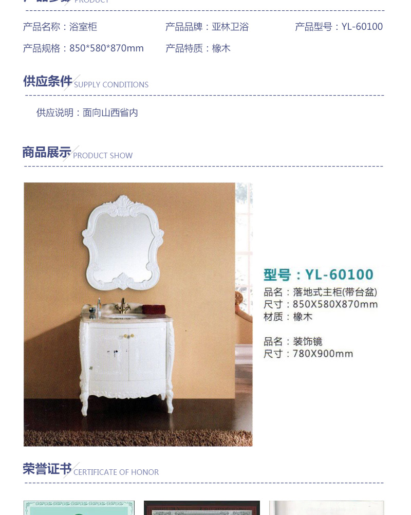 供应:太原亚林卫浴面向全山西供应浴室主柜、各种系类水龙头等