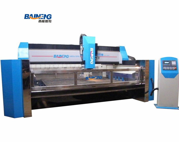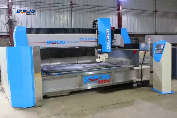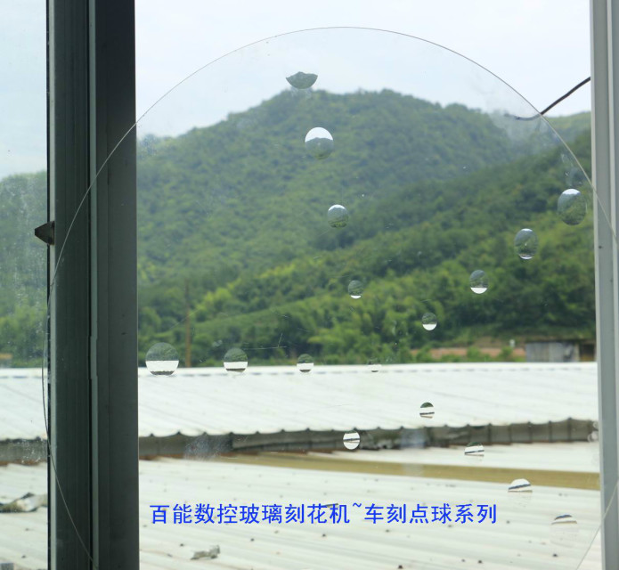 百能数控玻璃刻花机是专门用来在玻璃上刻花和刻字等深加工的全自动数控设备。工作台面铺有橡胶,配备真空系统,使得可以快速定位玻璃而不必借助任何机械装置,将玻璃摆满加工台面后,设备根据加工程序自动完成整个台面玻璃表面的刻花或写字,从CAD图形转换成加工代码到刻槽,换刀,抛光等全部包括粗雕、细雕、一次完成,加工精度高,速度快,操作简单!