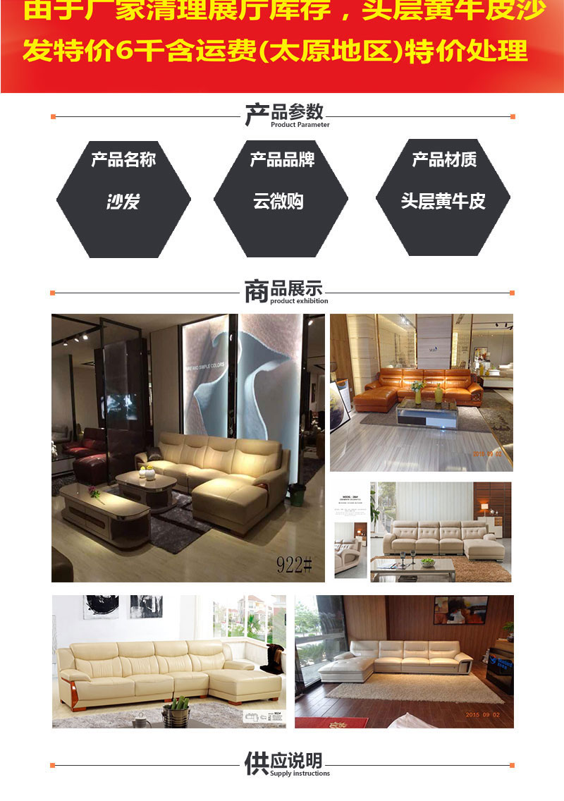供应:好消息!头层黄牛皮沙发特价6千含运费(太原地区)处理啦!