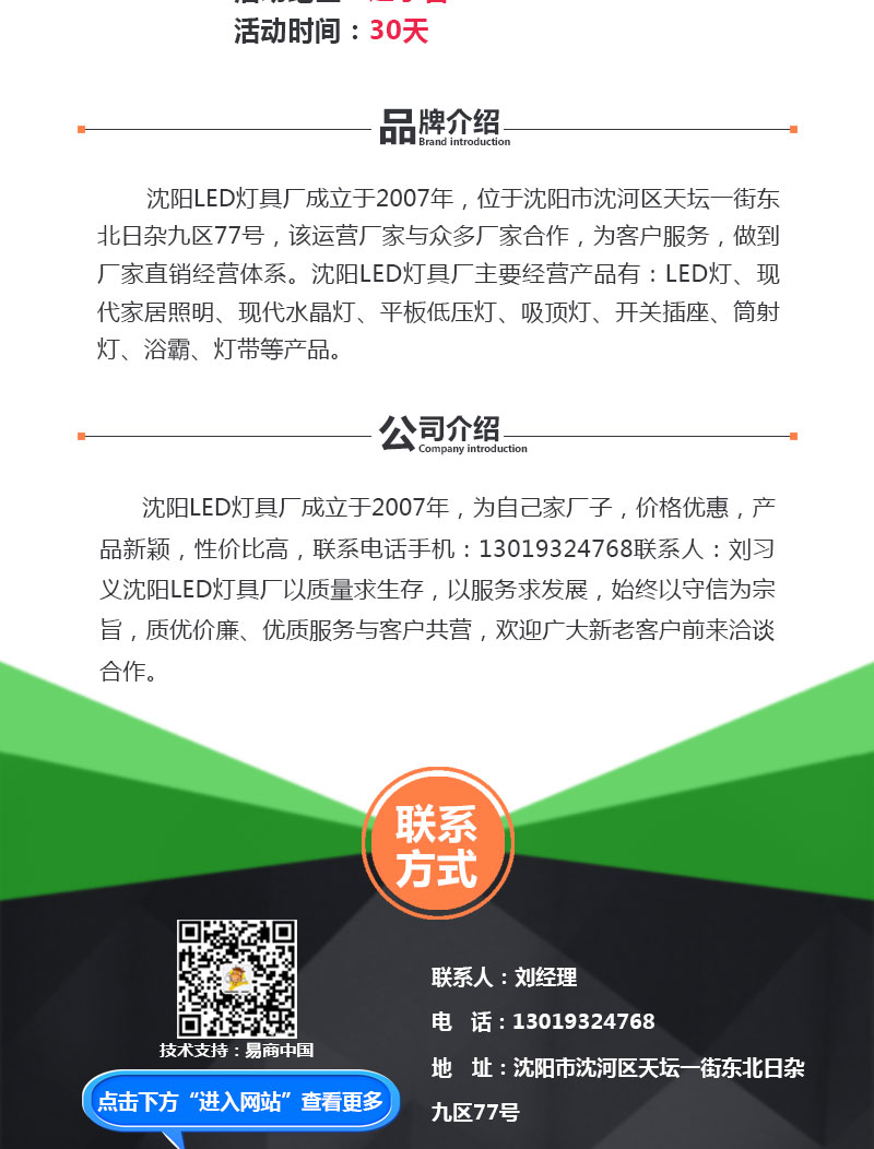 【内容摘要】沈阳LED灯具厂成立于2007年,位于沈阳市沈河区天坛一街东北日杂九区77号,该运营厂家与众多厂家合作,为客户服务,做到厂家直销经营体系。沈阳LED灯具厂主要经营产品有:LED灯、现代家居照明、现代水晶灯、平板低压灯、吸顶灯、开关插座、筒射灯、浴霸、灯带等产品。