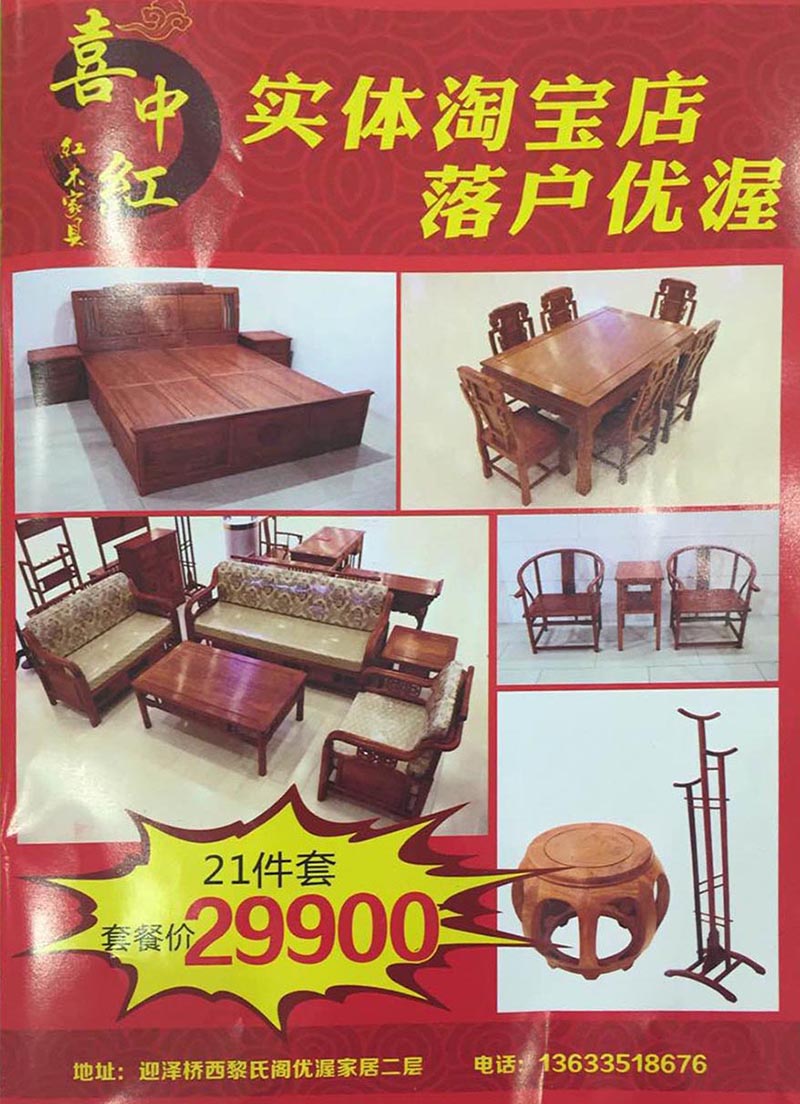 喜中红实体淘宝店以太原最低价的套餐让利老百姓消费者(21件套29900元)