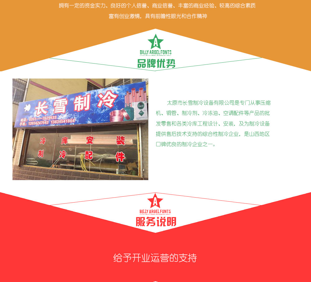 【内容摘要】太原市长雪制冷设备有限公司是专门从事压缩机、铜管、制冷剂、冷冻油、空调配件等产品的批发零售和各类冷库工程设计、安装,及为制冷设备提供售后技术支持的综合性制冷企业,是山西地区口碑优良的制冷企业之一。
