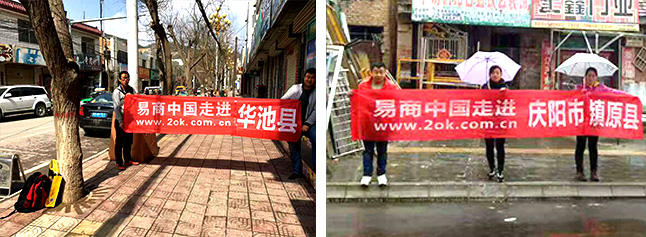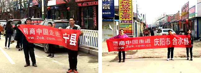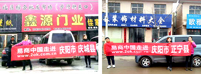 2017年三月易商中国走进陕西庆阳市地区,我们去了庆阳市及庆阳市、环县、华池县、镇原县、宁县、合水县、庆城县、正宁县,为商家进行线下推广,在现场我们工作人员给商家细心讲解产品的优势,有些商家还在现场进行电话咨询,还有订货上样品的,我们对投递产品感兴趣的商家也都做了记录,并在第一时间反馈给客户。