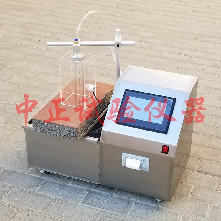 全自动砂基透水砖透水速率测试仪通过程序控制模拟小于到暴雨的水流量测试砂基透水砖的透水速率测试或是有相同试验要求的模拟试验。沧州中亚试验仪器有限公司根据国标《JGT 376-2012 砂基透水砖》研发生产。
