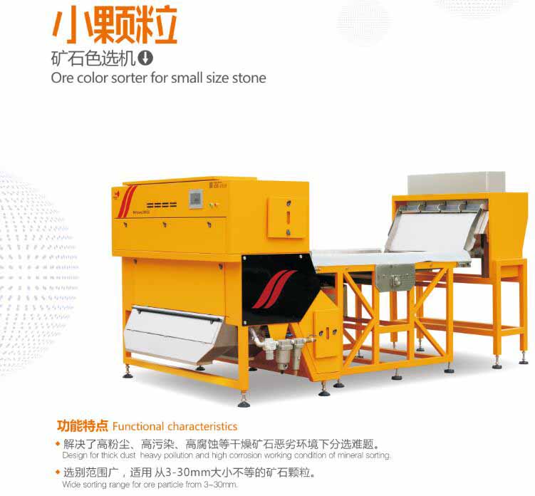 高端全彩线扫描技术,DSP+FPGA前沿处理技术,颜色和形状相结合多种模式复杂算法,针对不同矿石颗粒大小提供“色选+形选”的解决方案.
