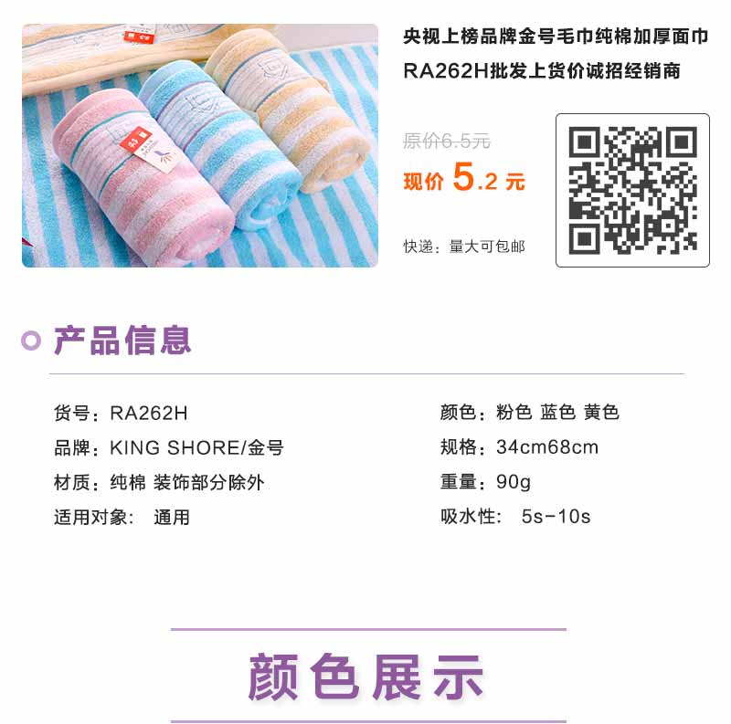 供应:央视上榜品牌金号毛巾纯棉加厚面巾RA262H批发上货价诚