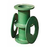 E型防护密闭套管主要由:钢制套管、翼环、固定法兰、挡板组成,适用与穿钢塑复合管的管道。