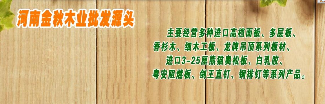 河南金秋木业批发源头是中国新型节能环保建材规模化生产和应用的引领者,主要经营多种进口高档面板、多层板、香杉木、细木工板、龙牌吊顶系列板材、进口3-25厘熊猫奥松板、白乳胶、粤安阻燃板、剑王直钉、钢排钉等系列产品,系河北金秋细木工系列、龙牌吊顶系列郑州办事处,公司秉承“诚信、务实”的理念和“质量求生存、创新求突破、管理求效益、和谐求发展”的宗旨,得以不断发展。