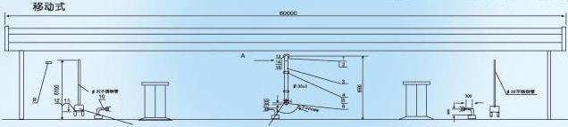 环流熏蒸系统按环流管道的固定方式分为固定式和移动式。固定式即管道固定于仓壁(固定于仓外壁为外环流,固定于仓内壁为内环流),移动式即引气管道和风量调节阀门固定于仓壁而风机和出风口风量平衡调节装置安装在移动小车(移动式环流机)上。引气管道与环流机之间采用软管连接。