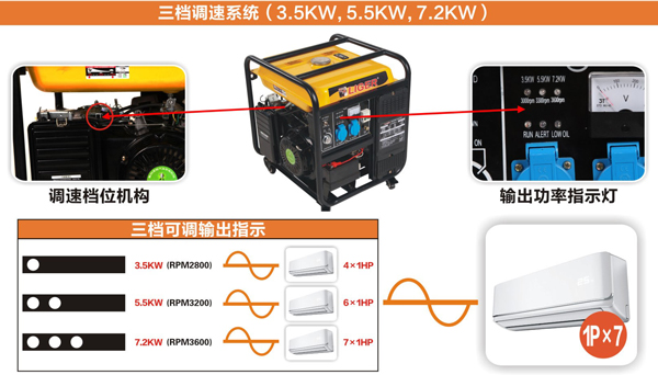 ● 三档可调输出:3500W / 5500W / 7200W。