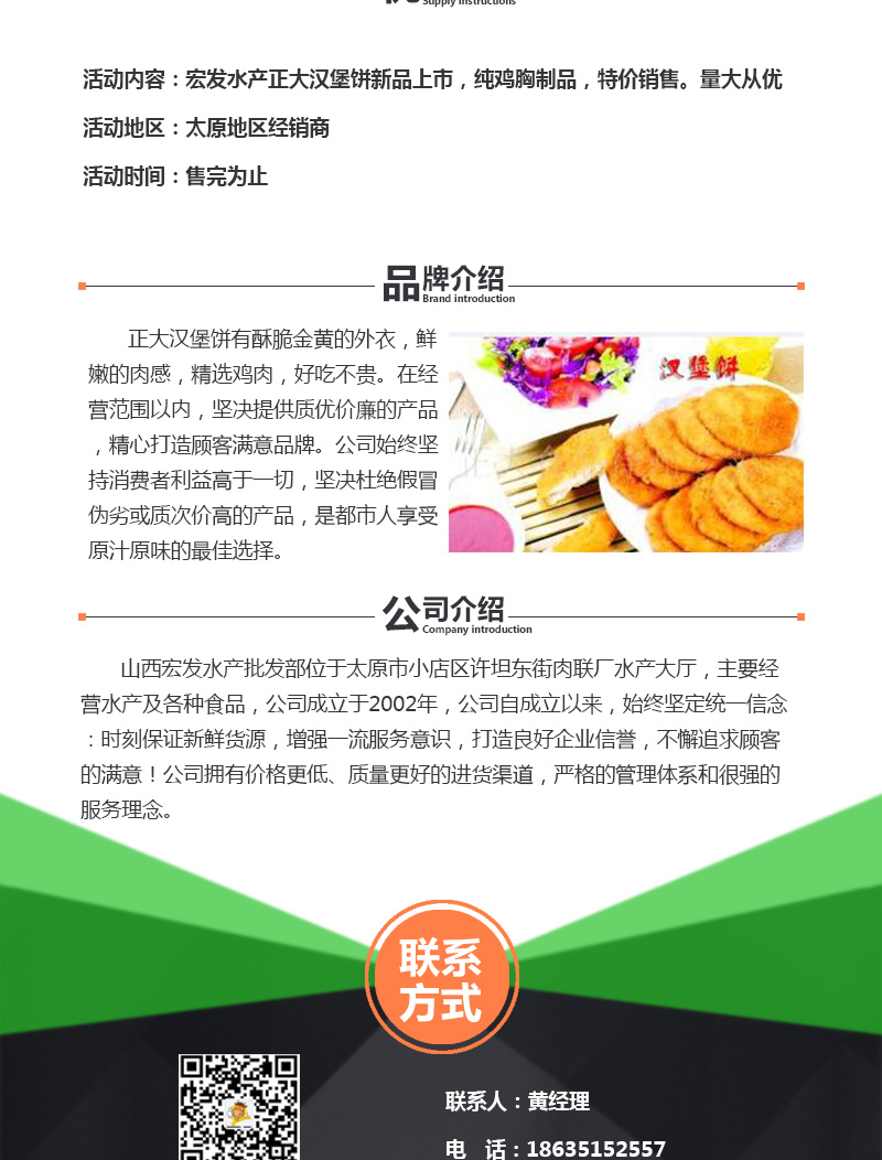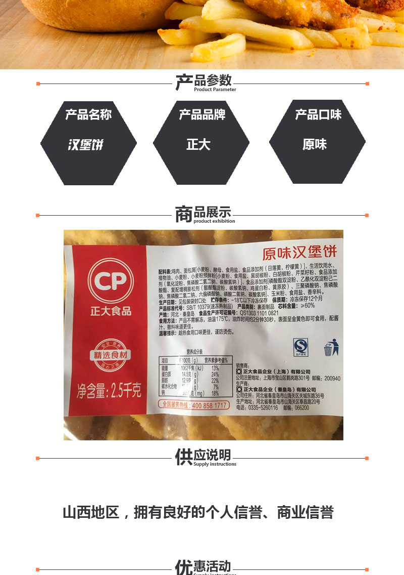 供应:宏发水产正大汉堡饼新品上市,纯鸡胸制品,特价销售