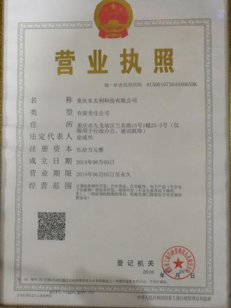 重庆东太利科技有限公司位于重庆市九龙坡区老顶坡经纬大道1601号附65号,公司成立于2011年,主要销售征服者、凌度行车记录仪、汽车装饰、汽车电子产品为主。 公司技术力量雄厚,高薪引进了一批在数码行业工作多年的资深技术人才,一套严谨的生产管理经验和一支勇于创新的员工队伍,为企业的发展提供了强劲的源动力。公司秉承“高新科技,极限速度,质量保证,优质服务”的核心经营理念,凭借自身技术优势及生产管理经验,不断加大研发投入力度,引进国内外先进技术,推陈出新,使产品领先于潮流。