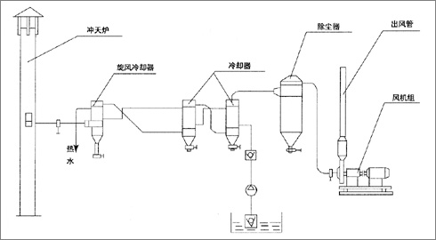 冲天炉消烟除尘系统系统由烟气专用冷气专冷却器、耐温达160℃的布袋除尘器,水冷系统及电气自动控制部分组成,适用于3-15T/h冲天炉消烟除尘,该系统国内首创。