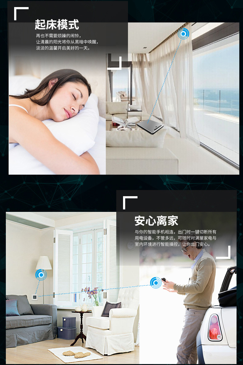 无需布线,随心DIY,舒适、惬意的智能生活触手可及,最便捷的智能家居系统。