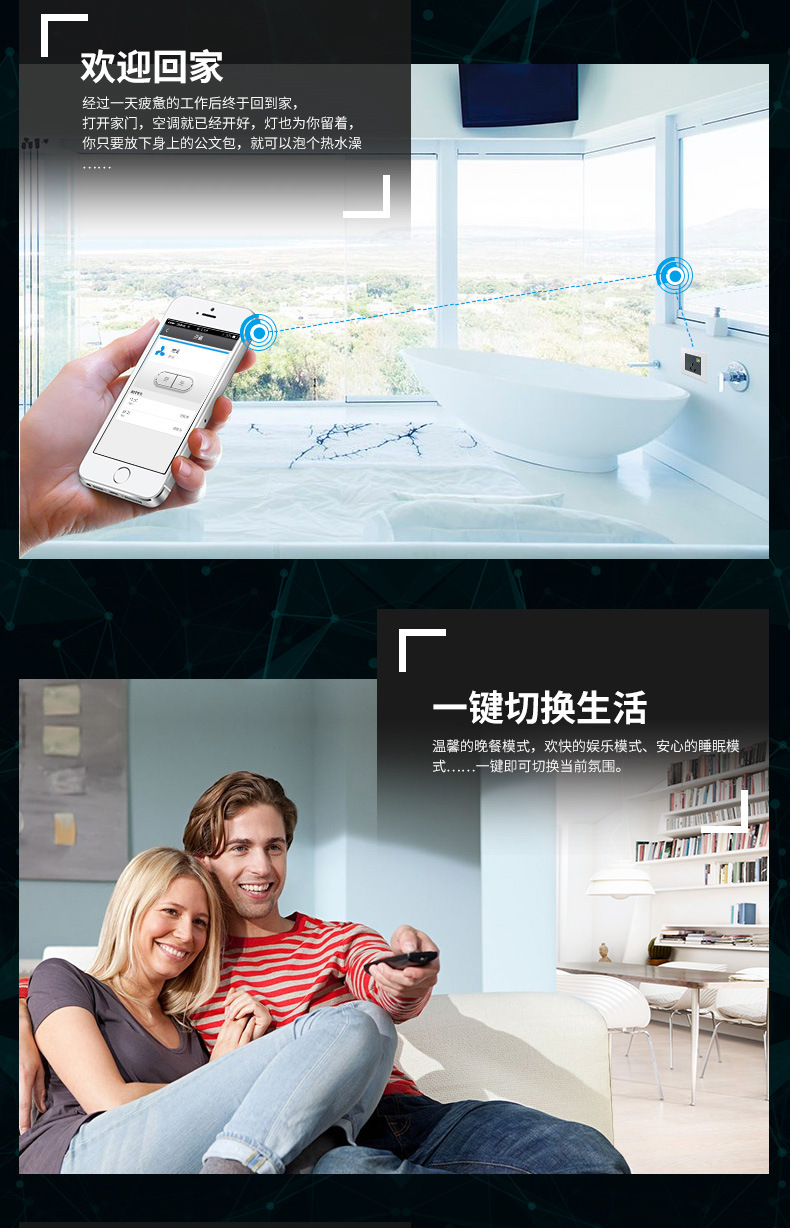 回家模式,打开门空调已经调到合适温度,舒服的热水澡已经帮你准备好。