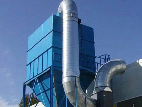 含尘气体由进气口进入灰斗或通过敞开法兰口进入滤袋室,含尘气体透过滤袋过滤为净气进入净气室,再经净气室排气口,由风机排走。粉尘积附再滤袋的外表面,且不断增加,使袋除尘器的阻力不断上升,为使设备阻力不超过1200Pa,袋除尘器能继续工作,需定期清除滤袋上的粉尘。清灰是由程序控制器定时顺序启动脉冲阀,使气包内压缩空气(0.5~0.7MPa),由喷吹管孔眼喷出(称一次风)通过文氏管诱导数倍于一次风的周围空气(称二次风)进入滤袋在瞬间急剧膨胀,并伴随着气流的反方向作用抖落粉尘,达到清灰的目的。
