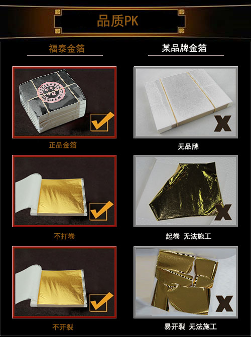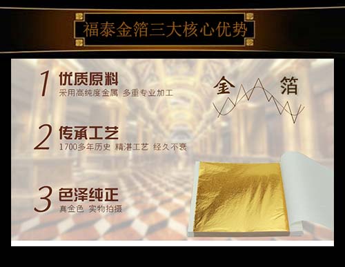 沈阳金箔装饰的金箔,银箔能够走进千家万户,经过公司不懈努力,开发了金箔、银箔、铜箔、铝箔、高仿金箔等各种箔类及相关胶水辅料,使其能在材质上施工,基本满足客户要求。