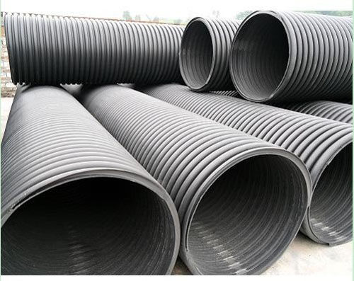 埋地排水用钢带增强聚乙烯(HDPE)螺旋波纹管用连续钢带压成近似^形的螺旋钢肋缠绕在内外两层热熔接的聚乙烯间,把钢材的高钢度、高强度和聚乙烯的柔韧、耐腐、耐磨结合在一起。