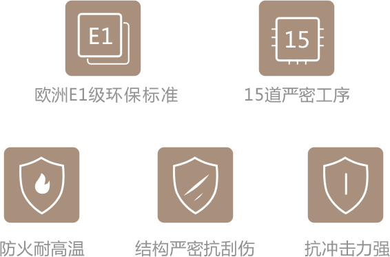 以欧洲防潮实木颗粒芯板为基材,欧洲E1级环保标准,