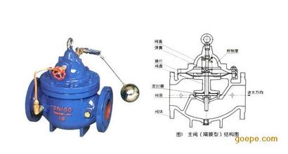 当水塔(池)的水面上升至设定高度时,浮球浮起关闭浮球阀,控制室内水压升高,推动主阀关闭,供水停止。当水面下降时,浮球阀重新开启,控制室水压下降,主阀再次开启继续供水,保持液面的设定高度。