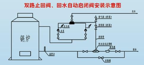 回水自动启闭阀主要是在阀体内设活塞轴,轴上端连接活塞,下端连接锥形阀,锥形阀下方有压簧。锅炉循环水泵工作时活塞受热水的压力向下运动,锥形阀打开,水泵停转时,热水失去压力,锥形阀上升将阀门关闭,从根本上解决了锅炉溢水的问题。