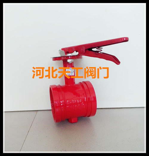 手柄沟槽信号蝶阀是我公司引进美国与德国同类先进产品技术,采用先进工艺而设计制造的一系列新型连接阀门。除了具有传统信号蝶阀的性能外它具有安装快速、简易、安全、可靠、不受安装场地限制、便于管道与阀门的维修保养,有隔振隔音与一定的角度范围内有克服管道连接不同轴而产生仿差,解决温差所产生热胀冷缩等优点。该手柄沟槽信号蝶阀的密封方式和转轴与蝶板的连接方式被授予实用新型专利。广泛应用于输送流体管道的给饮用水,暖气 管道,排水,消防、空调、燃气、石油、化工、水处理、市政、造船等管道工程作为控制流体作用。
