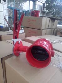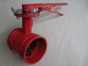 手柄沟槽蝶阀的手柄与安装在阀体上的流量牌相互配合,来控制流体的流量。阀体采用球墨铸铁铸造而成,阀体耐压:2.7MPa。手柄沟槽蝶阀整体设计新颖独特,比例协调,实用性强,是现在阀门行业的首选,阀门两端用卡箍连接于流体管道中,与以往的法兰连接或对夹连接相比,大大节省了制造材料,遵循我国节能减排战略方针政策。安装方便、快捷、牢固可靠等等。广泛应用于给排水、消防、石油、化工、医药、钢铁等管路上作为截断或调节之用。