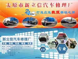 太原市新立信汽车修理厂成立于2007年,注册资金50万,员工25人,每位员工都要经过严格的培训,考核通过后方可上岗为客户提供服务。我们经过多年的锻炼成长,己经积累了丰富的救援操作经验,可以通过科学完善的服务流程,为客户提供一流的救援服务。太原市万柏林区新立信汽车维修部拥有专业救援车辆3台,面向社会实行365天、24小时无间断的汽车救援服务。现阶段我单位已和全省高速公路、高速交警队、保险公司、4S店建立合作关系,可以满足不同需求、不同规模、不同难度的施救需要。太原市万柏林区新立信汽车维修部提供市内、长途等拖车救援,方便、快捷、迅速为车辆提供救援咨询,专业司机异地送车服务,太原市万柏林区新立信汽车维修部为答谢各新老顾客,我们本着“客户的满意是我们不断追求的目标”的口号,以“五更方针”为经营理念,即比4S店更精湛的技术、更优质的服务、更优惠的价格、更快捷的速度和更强大的保障服务于客户的爱车。为客户提供包括汽车维修、汽车保养、钣金喷漆、事故抢修、汽车救援在内的全方位汽车服务,致力于打造一个顶级汽车服务品牌。