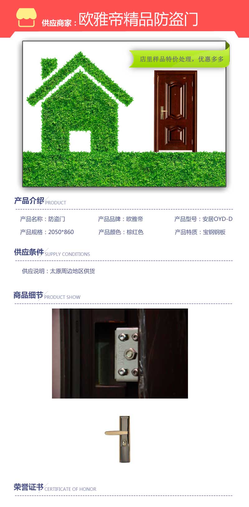 【内容摘要】公司为回馈新老客户,现店里样品特价处理,优惠多多,欢迎广大顾客前来选购。关键词:小店区哪卖安全防盗门 太原哪个牌子的防盗门好用