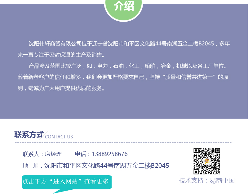 【内容摘要】沈阳伟轩商贸有限公司位于辽宁省沈阳市和平区文化路44号南湖五金二楼B2045,多年来一直专注于密封保温的生产及销售。关键词:沈阳毛毡批发,沈阳绝缘材料批发,沈阳尼龙材料批发