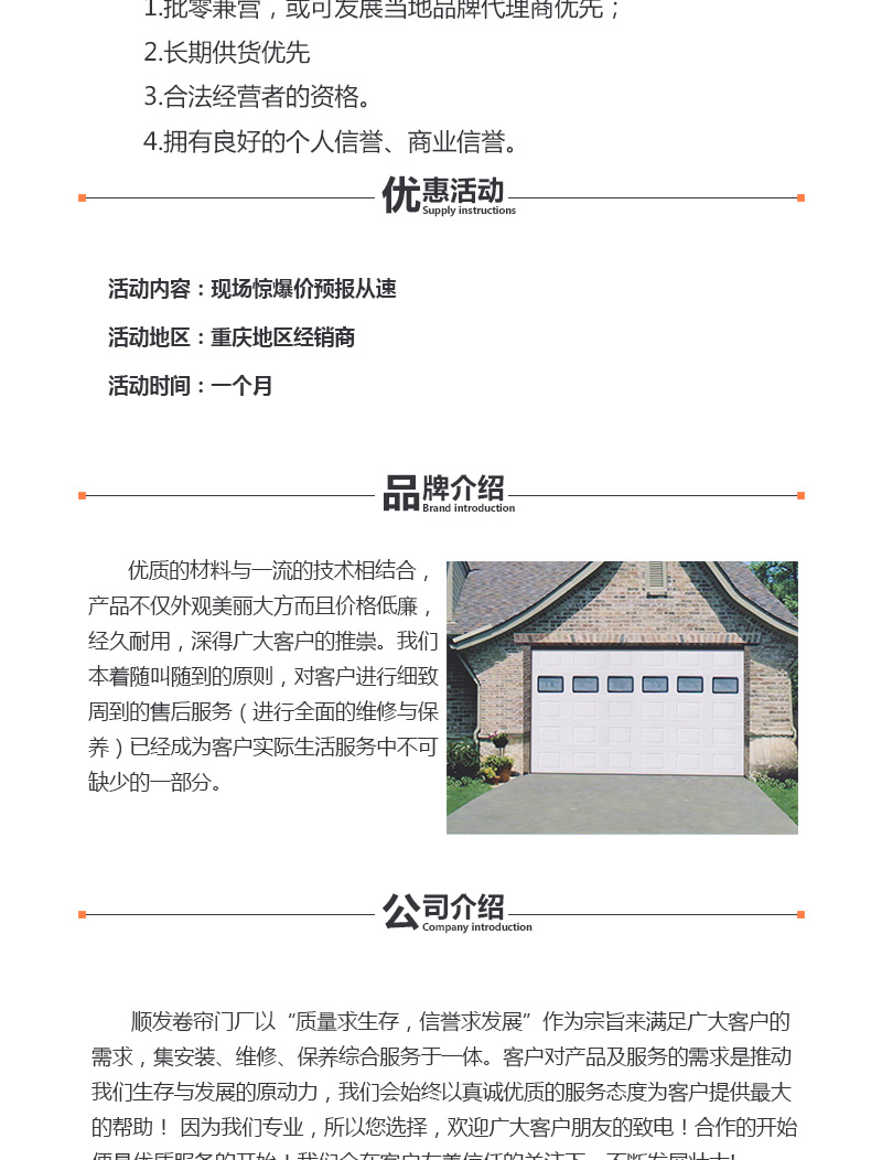 【内容摘要】顺发卷帘门厂以“质量求生存,信誉求发展”作为宗旨来满足广大客户的需求,集安装、维修、保养综合服务于一体。优质的材料与一流的技术相结合,产品不仅外观美丽大方而且价格低廉,经久耐用,深得广大客户的推崇