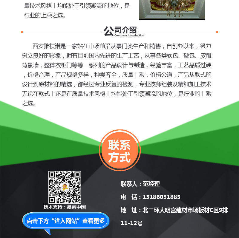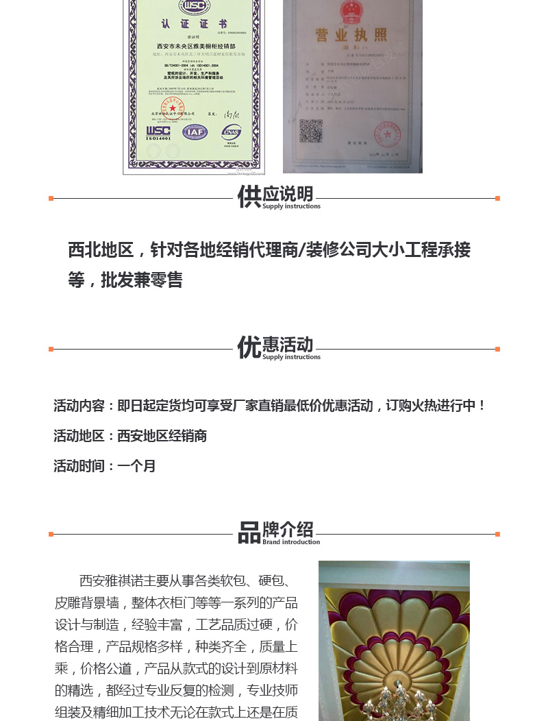 【内容摘要】西安雅祺诺是一家站在市场前沿从事门类生产和销售,自创办以来,努力树立良好的形象,拥有目前国内先进的生产工艺,从事各类软包、硬包、皮雕背景墙,整体衣柜门等等一系列的产品设计与制造,经验丰富,工艺品质过硬,价格合理,产品规格多样,种类齐全,质量上乘,价格公道,产品从款式的设计到原材料的精选,都经过专业反复的检测,专业技师组装及精细加工技术无论在款式上还是在质量技术风格上均能处于引领潮流的地位,是行业的上乘之选。