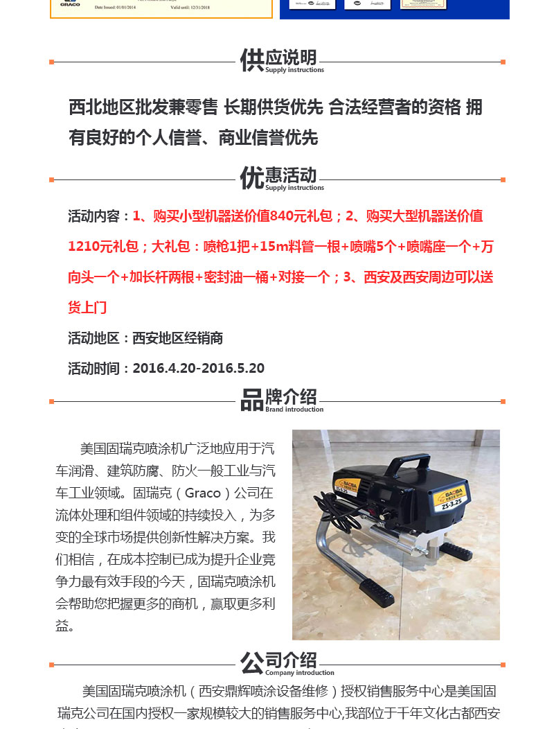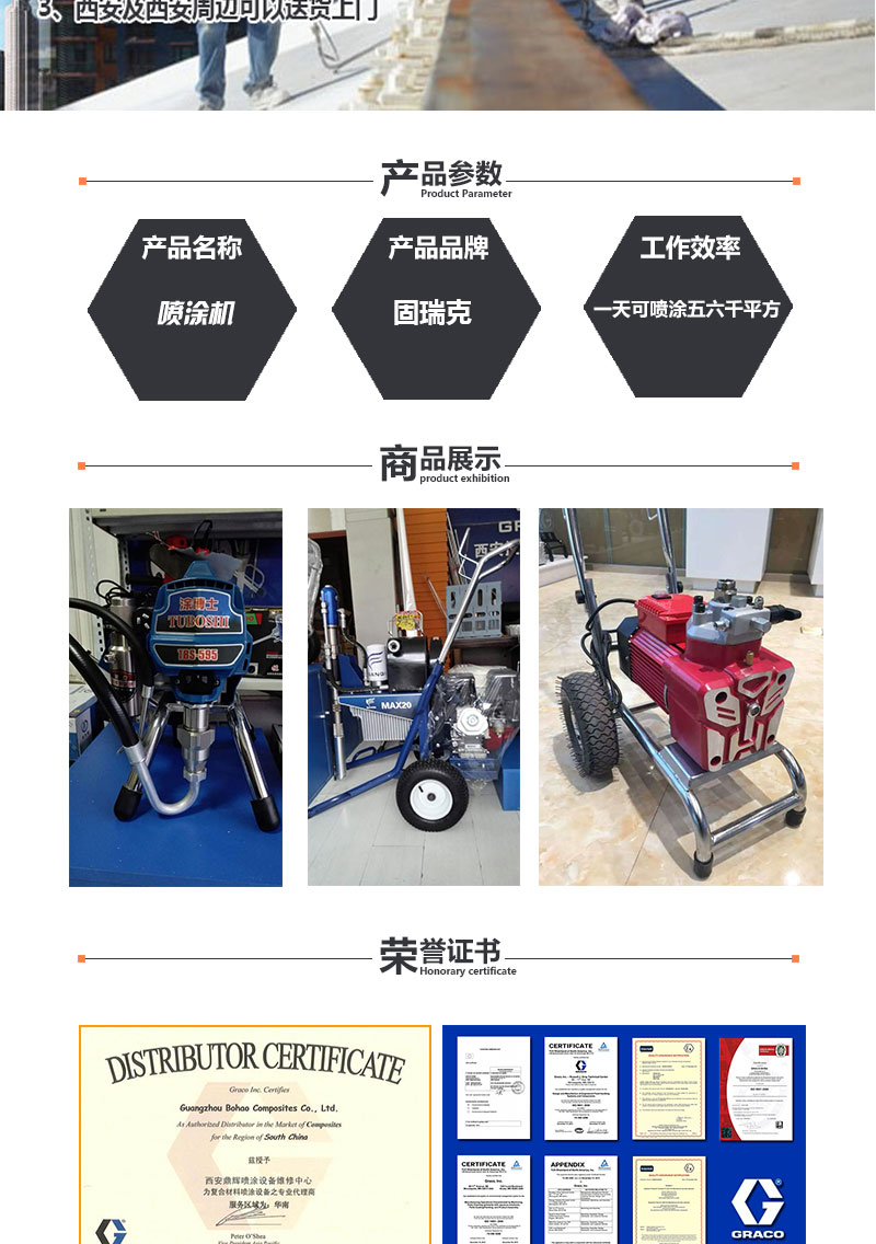 【内容摘要】美国固瑞克喷涂机(西安鼎辉喷涂设备维修)授权销售服务中心是美国固瑞克公司在国内授权一家规模较大的销售服务中心,我部位于千年文化古都西安市未央区北三环太华路大明宫五金涂料批发市场7排22-23号,十多年来主要负责固瑞克喷涂设备的销售、服务及专业技术培训。