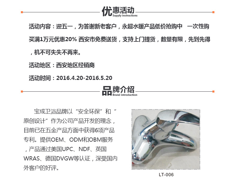 供应:迎五一,为答谢新老客户,西安永超水暖洁具产品低价抢购中