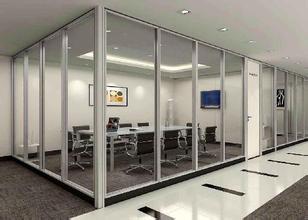 -嵌缝打胶——-边框装饰——-清洁 (二) 操作工艺: 1.弹线定位:先弹出地面位置线,再用垂直线法弹出墙,柱上的位 置线,高度线和沿顶位置线.有框玻璃隔墙型材划线下料时先复核现场实际尺寸,如果 实际尺寸与施工图尺寸误差大于 5mm 时,应按实际尺寸下料.如果有 水平横档,则应从竖框的一个端头为准.划出横档位置线,包括连接 部位的宽度,以保证连接件安装位置准确和横档在同一水平线上.下 料应使用专用工具(型材切割机) ,保证切口光滑,整齐. 2)组装:组装铝合金玻璃隔墙的框架可以有两种方式.隔墙面积较 小时,先在平坦的地面预制组装成形,再整体安装固定;隔墙面积较 大时,则直接将隔墙的沿地,沿顶型材,靠墙及中间位置的竖向型材 按划线位置固定在墙,地,顶上.用后一种方法,通常是从隔墙框架 的一端开始,先将靠墙的竖向型材与铝