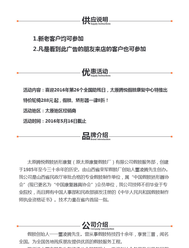 供应:喜迎残疾日,腾悦假肢定制产品一律八折,轮椅288元起