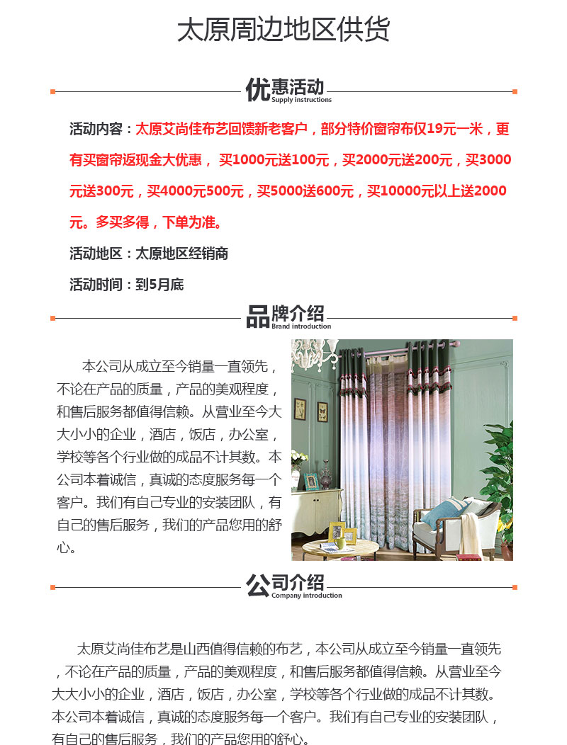 供应:太原艾尚佳布艺回馈新老客户,买窗帘返现金,机会难得!