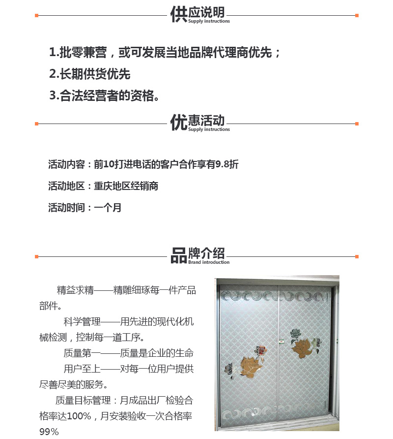 供应:前10打进电话的客户合作享有9.8折