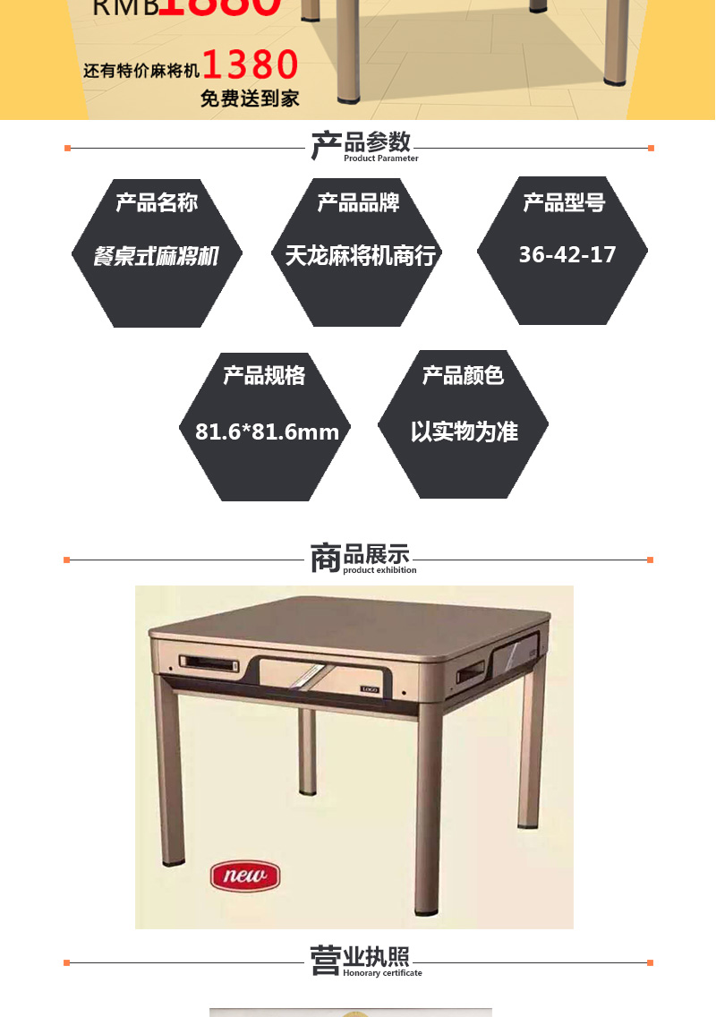 供应:报春鸟餐桌式麻将机原价2380现价1880还有特价麻将机
