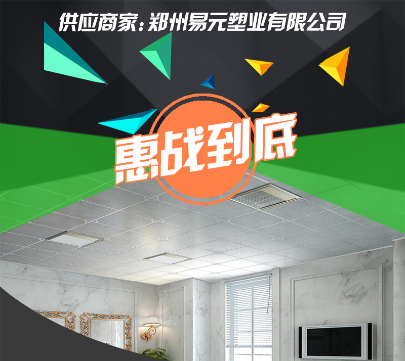 【内容摘要】郑州易元天花片料厂,位于中原地带,早期投资建厂以来,为各大批发商客户带来了巨大是商机。我厂的铝天花,适用于厨房、卫生间的吊顶,另有工程吊顶板材,为第三代吊顶材料。天花片料,是集成吊顶用的铝天花的原材料,工艺新颖,花色齐全。铝天花,主用于厨房、卫生间的吊顶,现在扩展到全屋吊顶,另有工装是工程板。