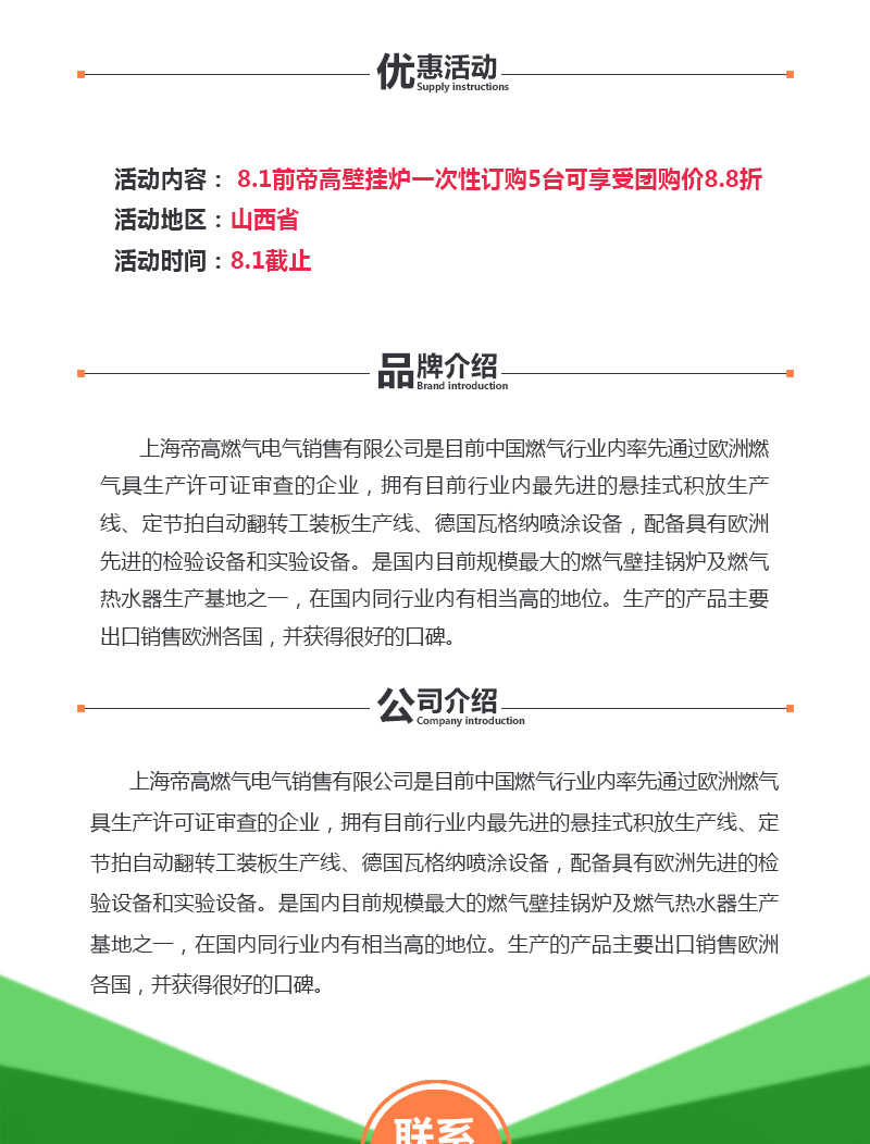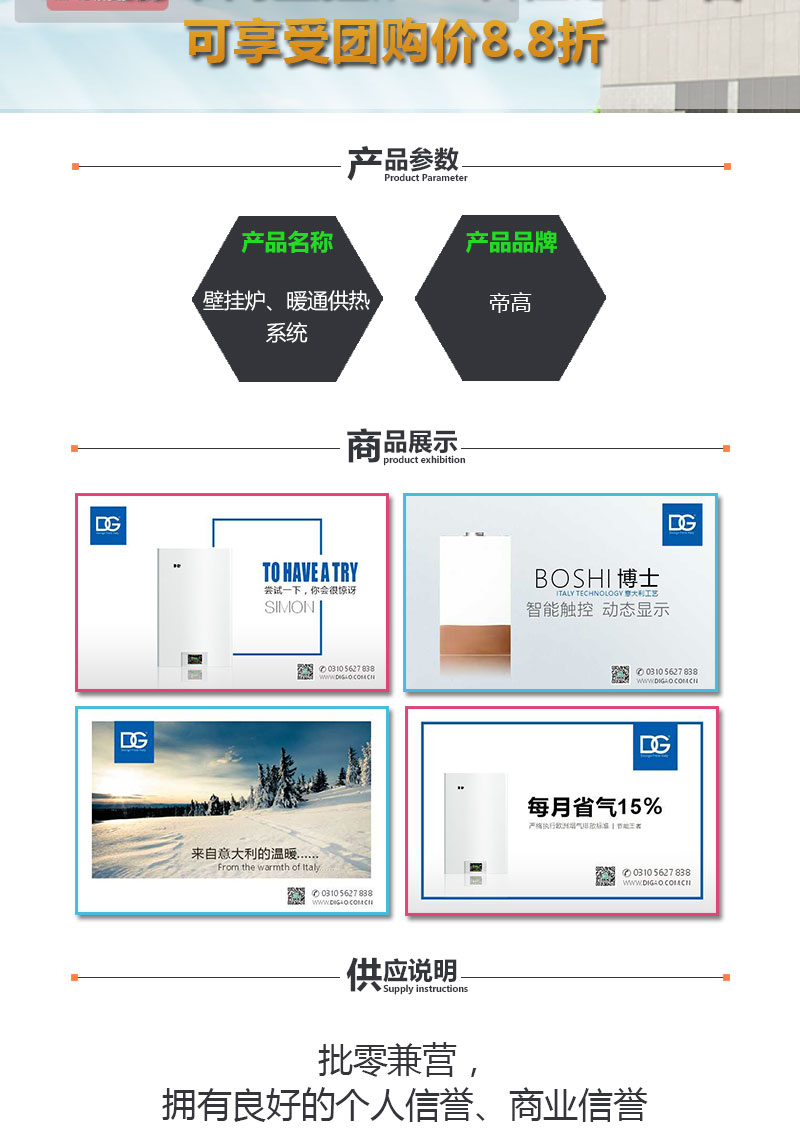 供应:8.1前帝高壁挂炉一次性订购5台可享受团购价8.8折