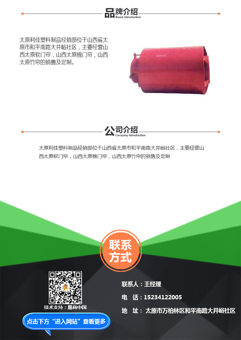 【内容摘要】太原利佳塑料制品经销部位于山西省太原市和平南路大井峪社区,主要经营山西太原软门帘,山西太原棉门帘,山西太原竹帘的销售及定制。