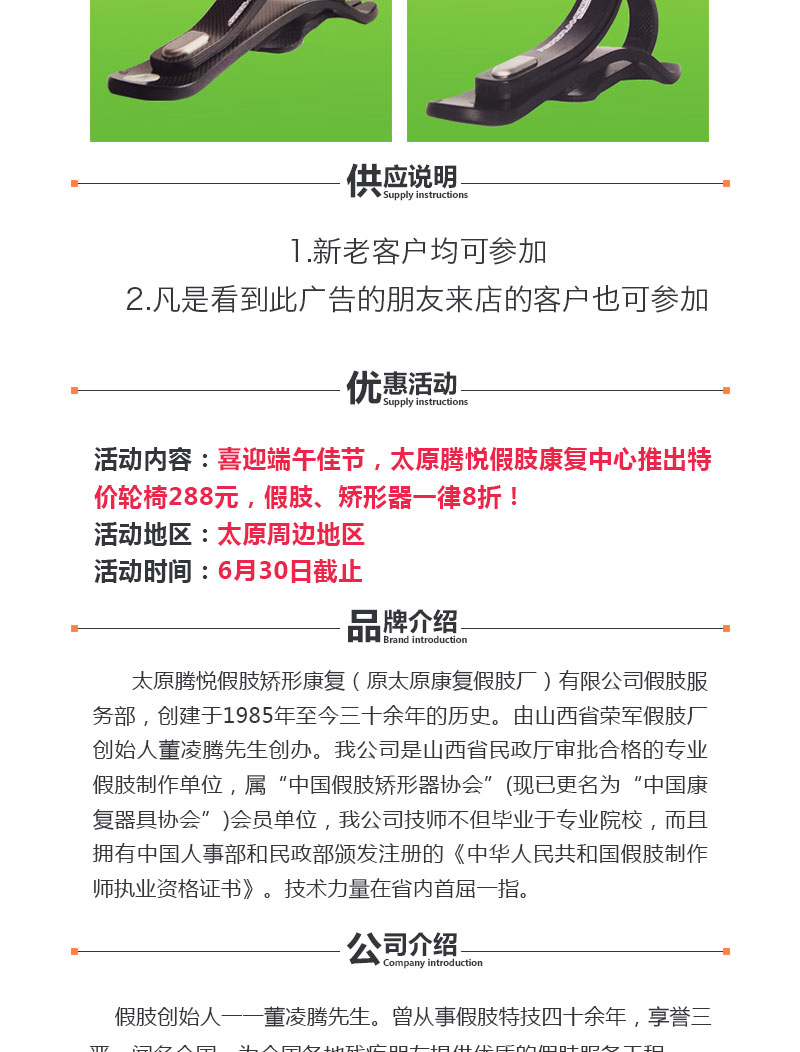 供应:喜迎端午佳节,轮椅特价288元起,假肢、矫形器一律8折!