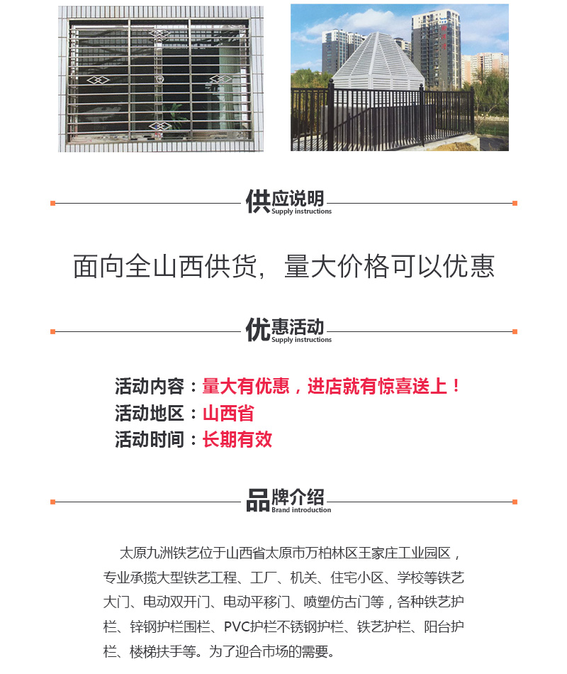 供应:太原九洲铁艺量大有优惠,进店就有惊喜送上。
