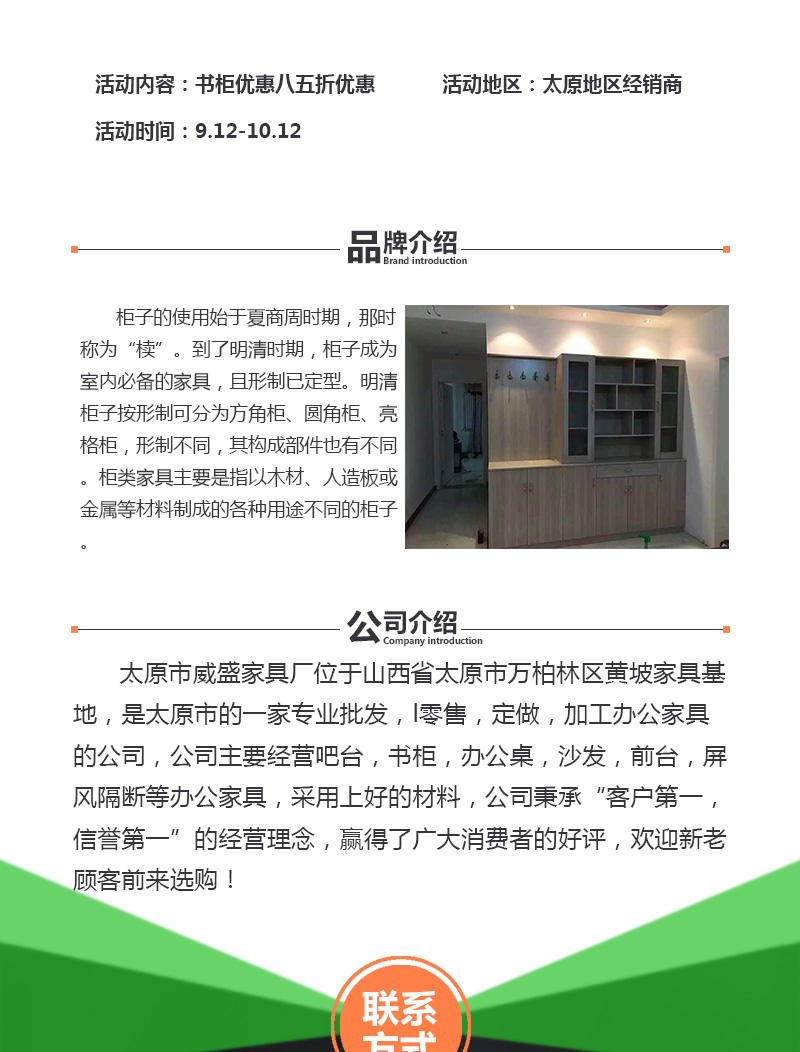 供应:书柜优惠八五折优惠时间是九月十二号至十月十二号