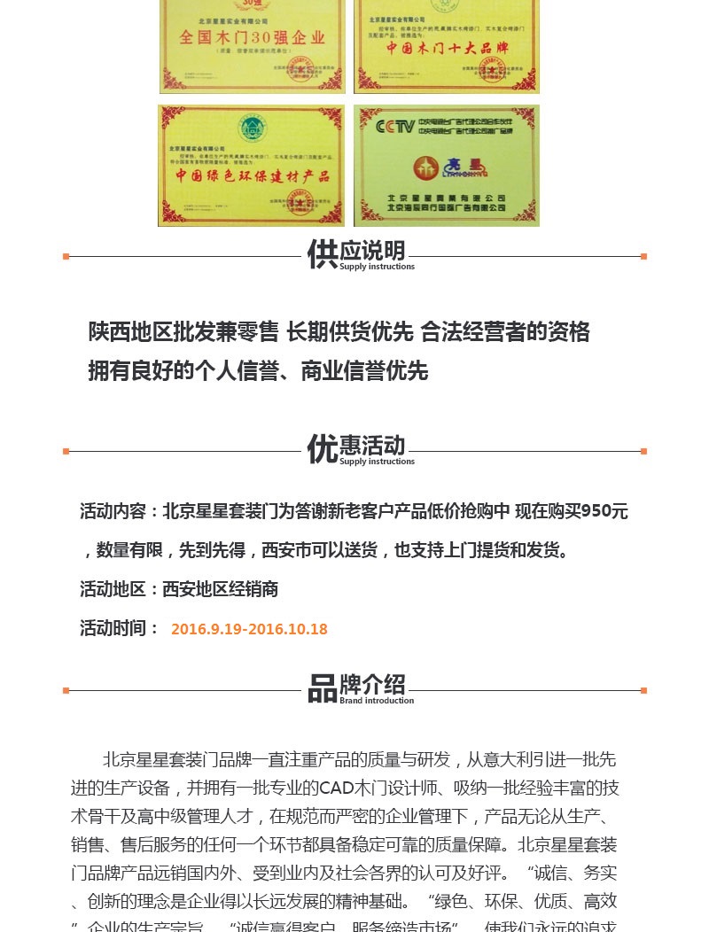 北京星星套装门国庆节为答谢新老客户产品低价抢购中