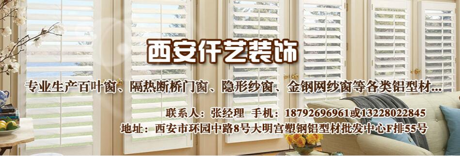 西安仟艺装饰公司是一家主营:百叶窗、隔热断桥门窗、隐形纱窗、主要经销金钢网纱窗型材及加工金钢网纱窗,等各类铝型材。