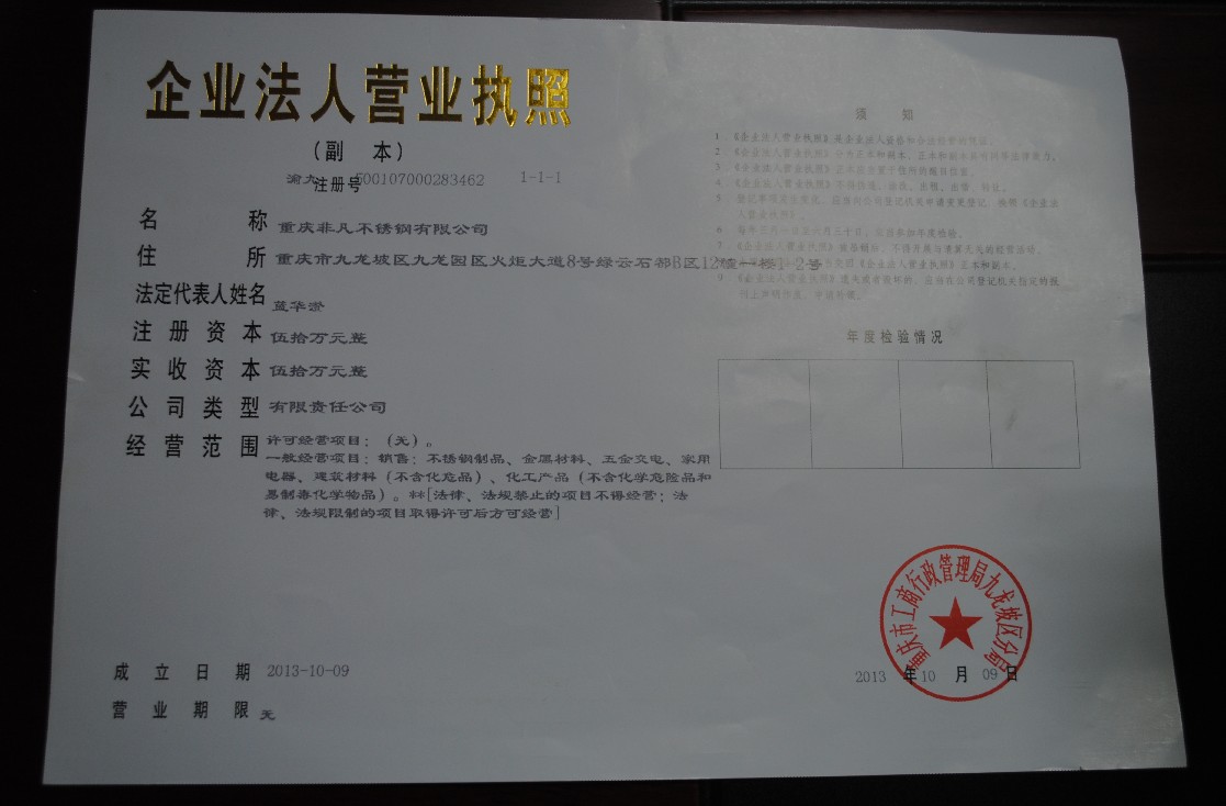 重庆非凡不锈钢有限公司、(重庆广磊不锈钢)位于重庆市九龙坡绿云石都B区12栋2号,公司主要从事重庆不锈钢加工。公司秉乘“以诚为先,以信待客”的公司宗旨,努力奋斗,开拓进取,顺利完成了经营理念、管理体制、产品质量等方面的调整与组合,成功地实现了产品品牌化、经营诚信化、目标国际化,在不锈钢市场诠释了一个属于自己的全新概念,成为重庆不锈钢行业的一枝独秀。公司自组建以来,在“合作、诚信、高效、创新”的经营理念的指导下,以“尊重、诚信、卓越”为企业精神和核心价值观。经过十年的不懈努力和各界同仁的大力支持,欢迎各位新老顾客到我公司加工不锈钢。