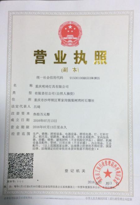 重庆明琦灯具有限公司位于重庆市沙坪坝区新桥工业园区,拥有多名专业技术人才,先进的生产设备与专业的制造工艺及完整的管理体系、完善的检测设备,不断的推陈出新,力求为客户提供最优质的产品。